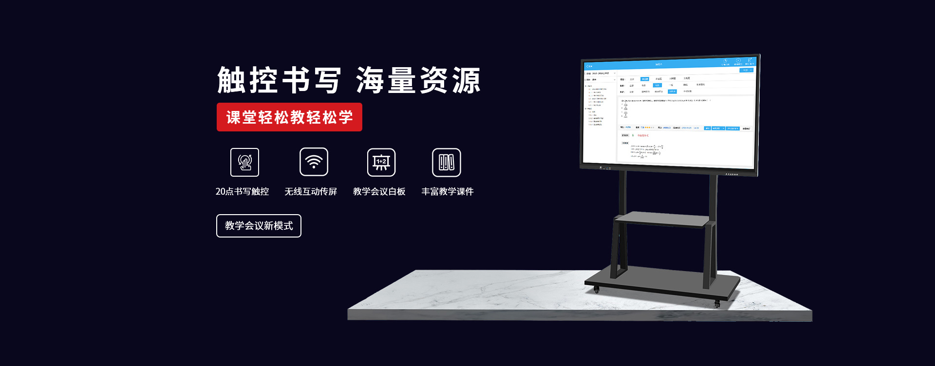 〔教育智慧黑板〕 是新一代教學(xué)顯示設(shè)備,具有高清顯示、高精度觸摸操作應(yīng)用,黑板書寫教學(xué)功能與一身;內(nèi)置安卓、windows系統(tǒng),可滿足教學(xué)不同的應(yīng)用軟件使用;純平面書寫黑板,適應(yīng)粉筆,無塵粉筆、水性粉筆書寫,適合不同環(huán)境應(yīng)用;觸摸切換書寫黑板與屏幕顯示,可讓老師快速進(jìn)行教學(xué)應(yīng)用切換;純平面外觀,解決傳統(tǒng)推拉黑板的笨重,復(fù)雜的結(jié)構(gòu)特點,大大提升了教師授課的體驗感和演示效果。